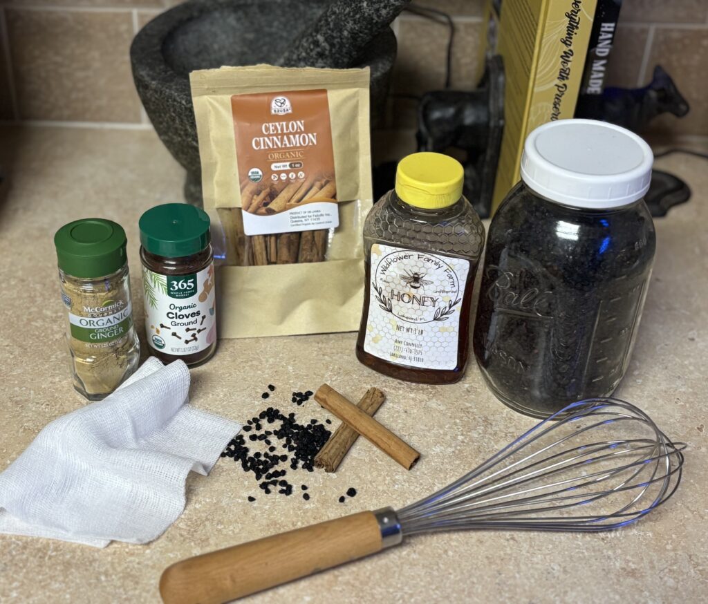 Dosage: Take 1 tablespoon daily for adults or 1 teaspoon for children. At the first sign of illness, you can increase to every few hours.