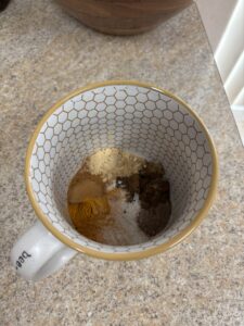 1. Add all dry ingredients to a mug or cup